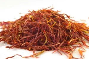 El azafrán, en inglés Saffron, es la parte que receptora del polen en la flor del la planta Crocus sativus.